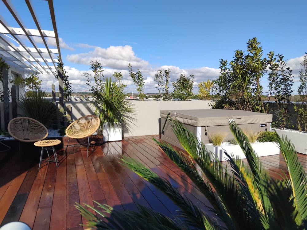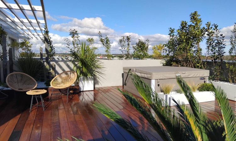 Aménagement paysager complet d'un toit terrasse à saint jean de vedas. Rodriguez Paysages a effectué un aménagement d'un toit terrasse à saint jean de vedas.