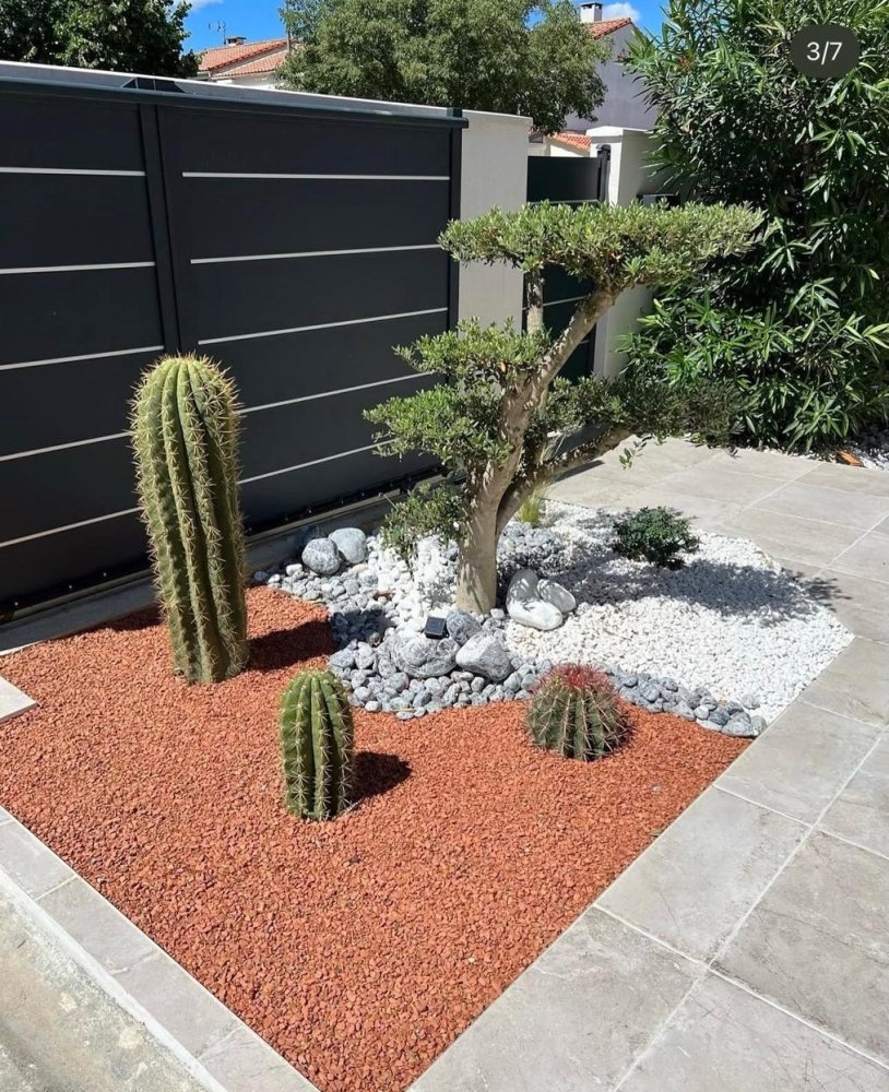 Nous proposons la plantations de végétaux désertiques, l'installation de décorations minérales exterieur.