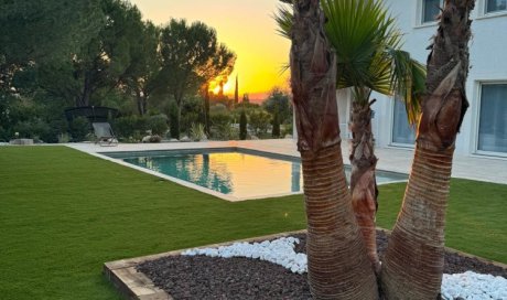 Aménagement gazon synthétique sur la commune de Saint jean de vedas. Rodriguez Paysages vous propose la création d'un jardin exotique privé à&...